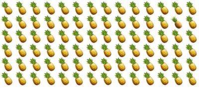 Imej menunjukkan banyak nanas, mereka digambarkan dalam beberapa baris. Tugas anda adalah untuk mencari nanas khas yang berbeza dari yang lain.